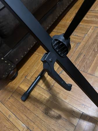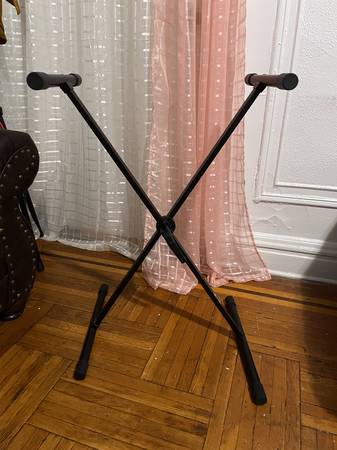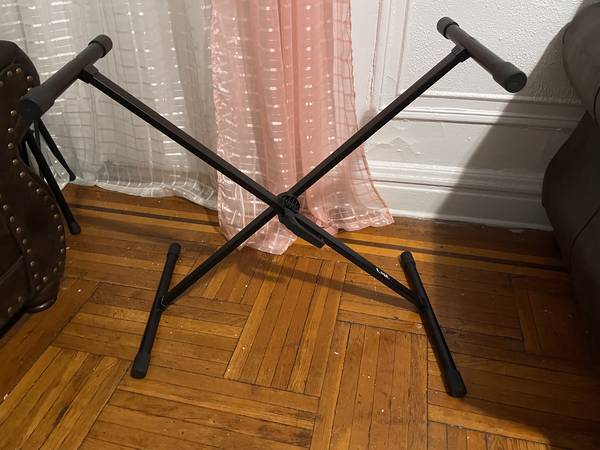 Adjustable heavy-duty QMG keyboard stand with release handle. The stand is in excellent condition, with minor scratches on the rubber feet from use.