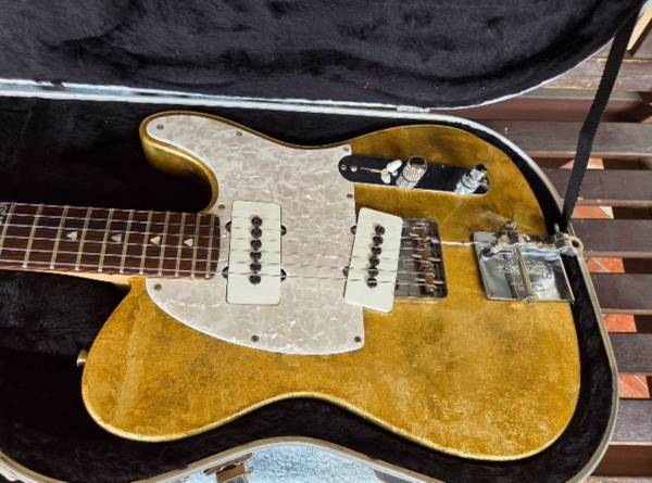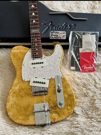 Only 1 of 250 ever made. This Will Ray signature Jazz-A-Caster features a real gold-leaf Tele body, rosewood board with pyramid inlays, Strat headstock, Schaller locking tuners, custom Seymour Duncan Jazzmaster pickups, and the factory Hipshot Will Ray B-Bender. A true showpiece and highly collectible.