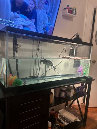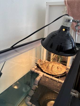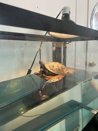 Friendly 2-year-old river cooter turtle (pretty sure he’s a boy!) looking for a good home. Comes with a full setup — 55-gallon tank, basking platform, and heat lamp included. Healthy, active, and loves to bask. Asking $200 for everything (turtle + complete setup).