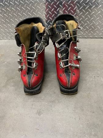 Vintage Kastinger PS2000 Ski BOOTS, Downhill, Made In Austria, Leather Boot with Metal Buckles. Size 8 1/2. Boots would make a beautiful decor piece for your cabin, chalet, lodge, winter, sports, and/or Christmas holiday decor! You could hang them on your wall for a unique display! Also a wonderful set for a collection!