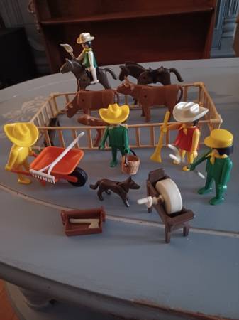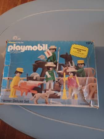1980 Schaper Playmobil System 1502 Farmer Deluxe Set with box $30 People, animals, tools. A complete set. Playmobil #1902 Vintage Police Rescue Deluxe Set with box $30 People, horses, motorcycle...