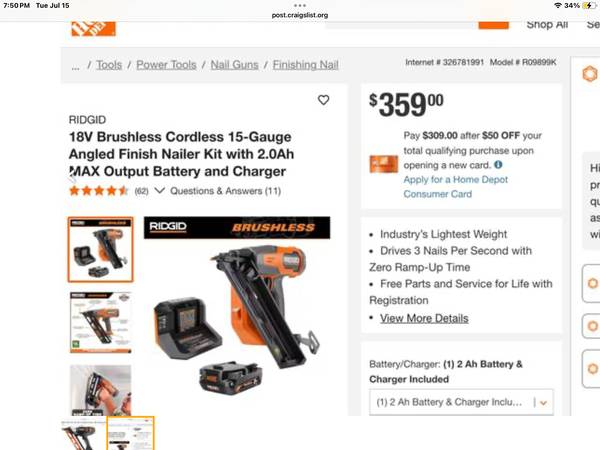 Excellent working Ridgid R 250 AF18 , shoots up to 2 1/2” nails