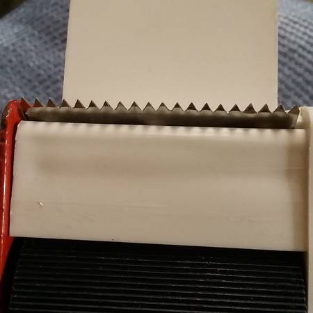 This is a Tiger Tough packaging tape dispenser. It holds standard size rolls of packaging tape. It is used. It is clean. It is in very good condition. I have one.