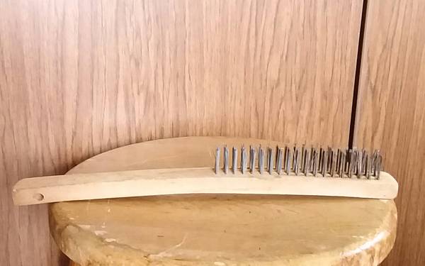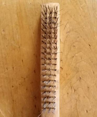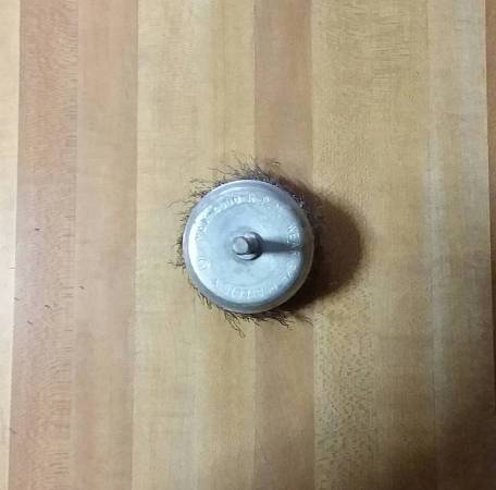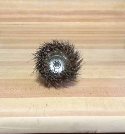 The cup brush itself is 2" in diameter, and slightly less than 1-1/2" in height (cup and bristles together).