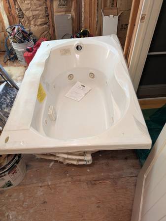 The Jacuzzi Espree 536 is a 60-inch by 36-inch rectangular whirlpool bathtub with a 120-volt electrical requirement and a 15-amp circuit. It is made of acrylic.