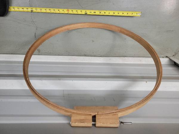 Embroidery Hoop 22 inches-vintage it is over 50 years old+. It came from my mother's antique shop from the sixties and it was old then.