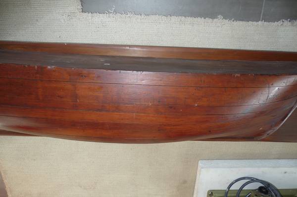 Overall measures about 5'. Actual ship hull about 50". Heavy, unwieldy to handle. Rare!. Unsure of its age but it is old. Pickup in Norwalk, CT