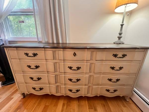 Antique Link Taylor French Provincial dresser with original hardware. Beautifully refinished in mint condition. 21”d,71”l,34”h: Reasonable offers will be considered.