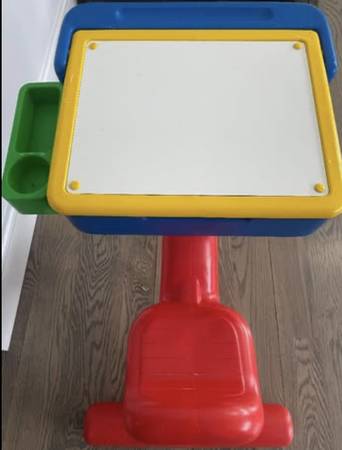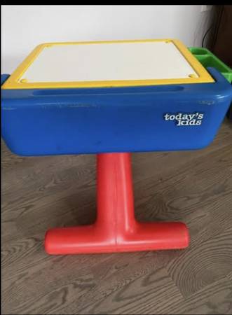 Play & learn toddler desk By "Todays Kids" Multi functional. Top of desk is a dry erase board for fun drawing.