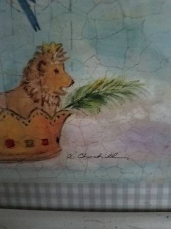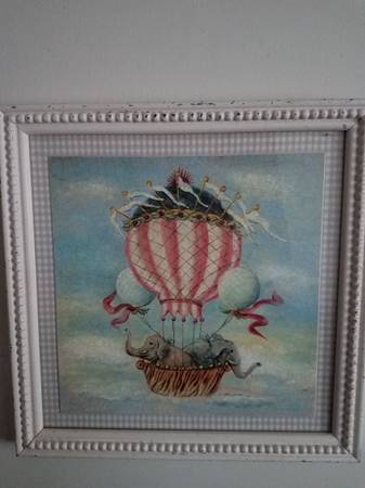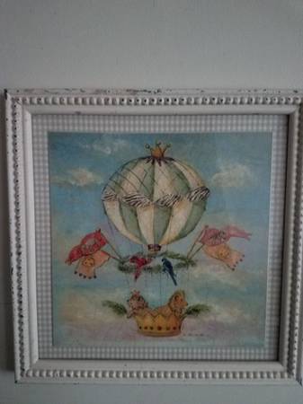 2 framed artworks from Alexandra Churchill's popular balloon series. Perfect for nursery or young childrens room. Set in a jigsaw style motif. 14"×14" $249 for both.