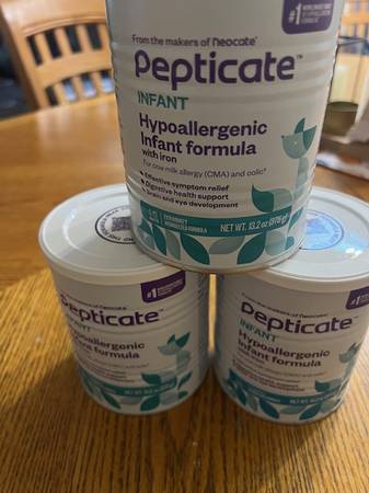 The product is a set of three Pepticate hypoallergenic infant formula containers with iron, each weighing 13.2 oz and with an expiration date of 02/10/26 + 12/18/2026. This special formula is designed for infants aged 0-12 months and is hypoallergenic, making it suitable for babies with sensitive dietary needs. Produced in the Netherlands, this powder formula provides essential nutrients for healthy growth and development.