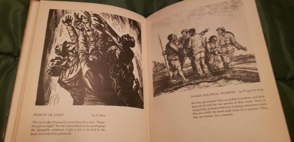 Features a selection of woodcuts chosen under the guidance of the China Woodcut Association and the Chinese Ministry of Information. Works included are by: Huang Yung, Li Hwa, Chu Ming-kang, Wang Chi, Lu Tien, Liang Yung-tai, Huang Yung-tsan, and others. Scenes are of people and places within China with commentary by Pearl S. Buck.