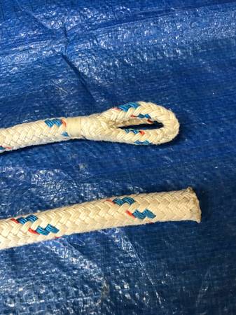 120 FEET LONG 5/8" DIA. VERY GOOD CONDITION WHITE / BLUE FLECKS FLEMISH 1 1/2" EYE