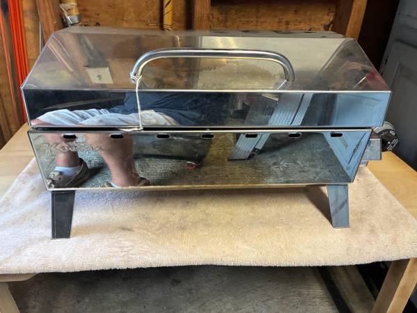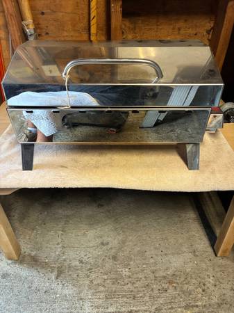 STOW & GO PROPANE PORTABLE GAS GRILL TABLETOP MOUNTABLE WITH FOLDING LEGS GREAT FOR BOATING, PICNICS, CAMPING 19" W X 10"D X 12"H VERY GOOD USED CONDITION