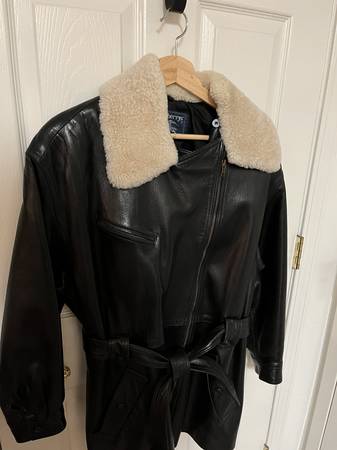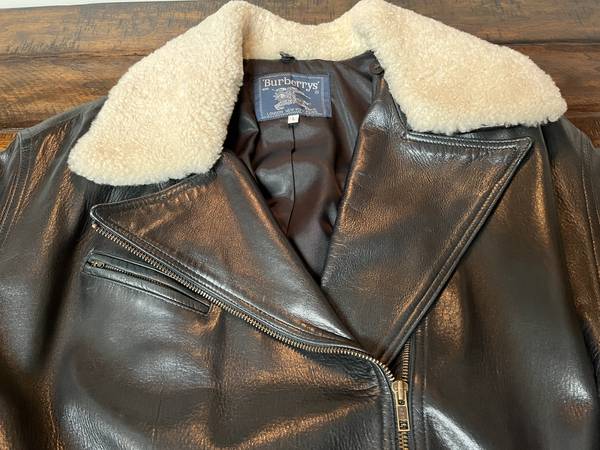 VINTAGE BURBERRYS 3/4 GENUINE LEATHER COAT w/Sherpa Removable Collar. Color: Brown Size: Large 12/14 Thermolite Insulated Lining. Good Condition (Original Owner) Non-Smoking clean home.