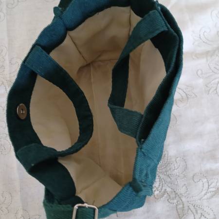 Women's Shoulder Bag - $5 "like new" condition dark green washable fabric 8 inches by 10 inches by 3 inches deep adjustable shoulder strap plus carry handles cream colored fabric lining 1 large...