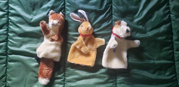 Three Vintage Steiff Hand Puppets (1) "Foxy" The Terrier (1) Long Eared Rabbit (1) Red Fox All are 100% Steiff /with Original Tags All have 100% Mohair (Fur) All are in Excellent Condition Local...