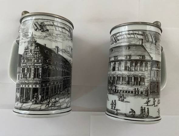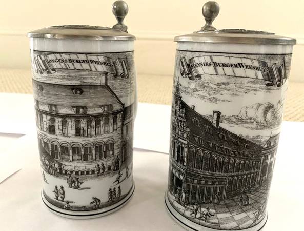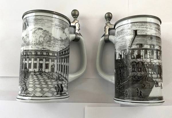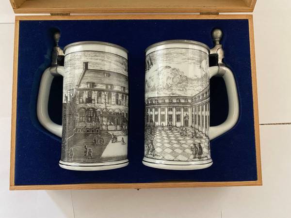 Rare Limited Ed. 17/700 Dutch Beer Stein Pair in Box Commemorating Amsterdam's 700th Anniversary. Both steins marked 17/700.