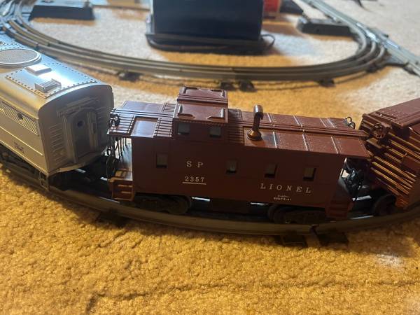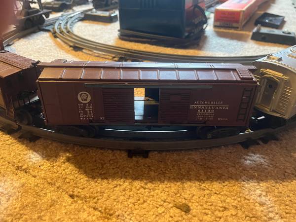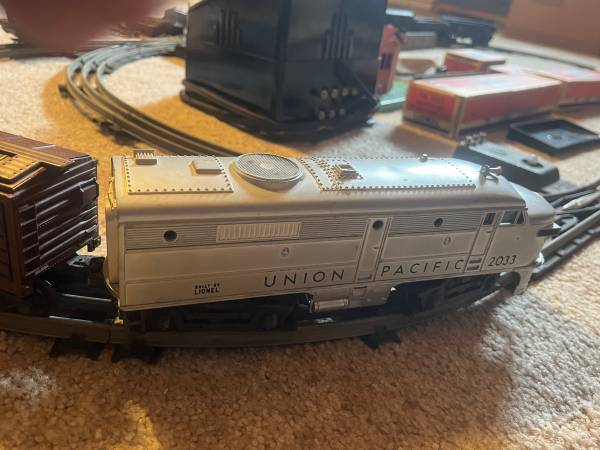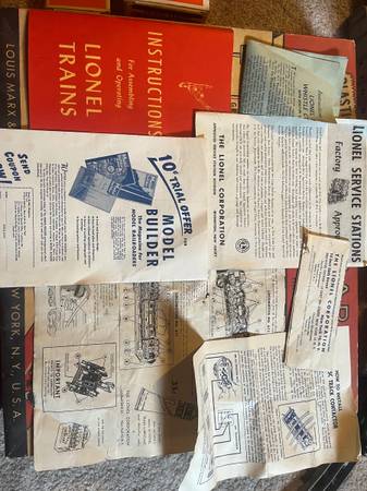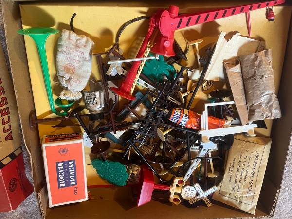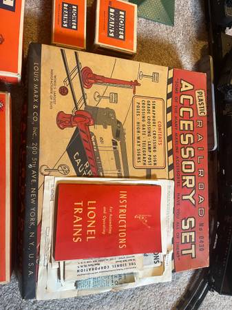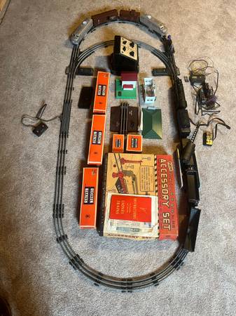 Selling lionell set from the 1950’s its got 3 engines in excellent condition, lots of cars (3 still in the box), tons of accessories in the original box with all manuals, receipt, lube, parts, tracks, controllers (wires are old and flakey), a metal bridge, 2 buildings, a pump cart with 2 guys. Selling all of it!