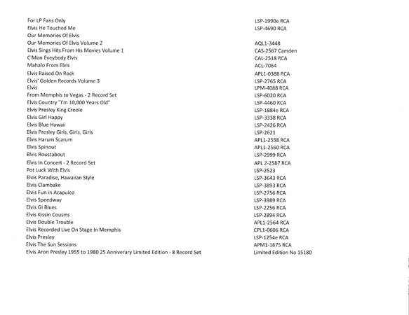Attention Elvis Fans! Vintage Vinyl Collection – 69 Titles from the King! Featuring a mix of: • Volume sets • 2-record sets • Anniversary editions • Sought-after long play albums Average Condition...