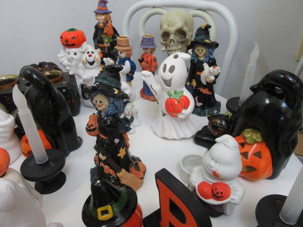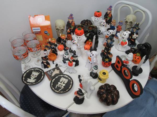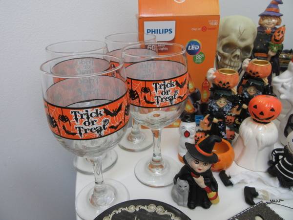 THEY ARE AVAILABLE......$60 takes all.....cute knick-knacks, 4 wine glasses (glass not plastic), orange outdoor-indoor mini light set.....a few knick-knacks have chips on them but are still great for display......many have openings in back to insert a candle or to just use the way they are....alot of stuff for your Halloween party.....starting to downsize.....clean, smoke-free, pet-free home...pick up in Milford Ct exit 36, i95......no shipping.....MUST SEND NAME AND NUMBER IN REPLY.