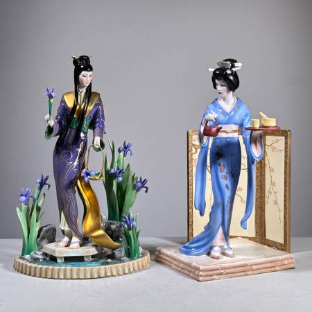 Including Ayame Princess of the Iris Blossom and Tamiko porcelain figurines by Manabu Saito for The Franklin Mint - h. 11.5 x w. 7.5 x d. 5 in