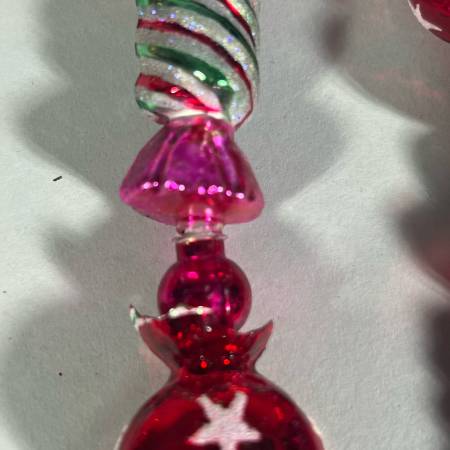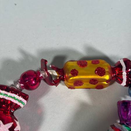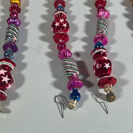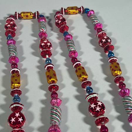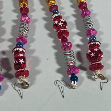 Painted with vibrant colors these 4 strings are each 3 feet long. All have Radko charms. Please note these are very delicate and there is minor damage. - l. 36 in.