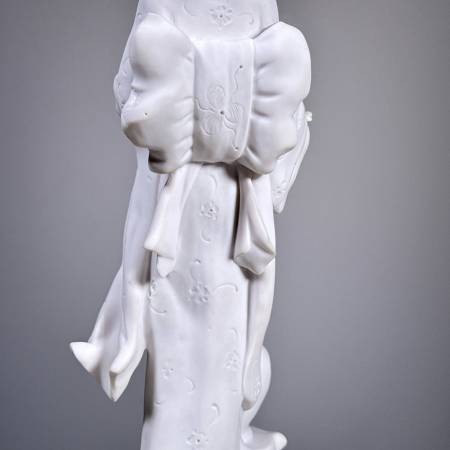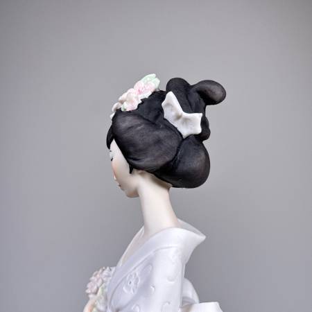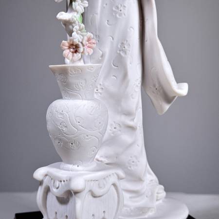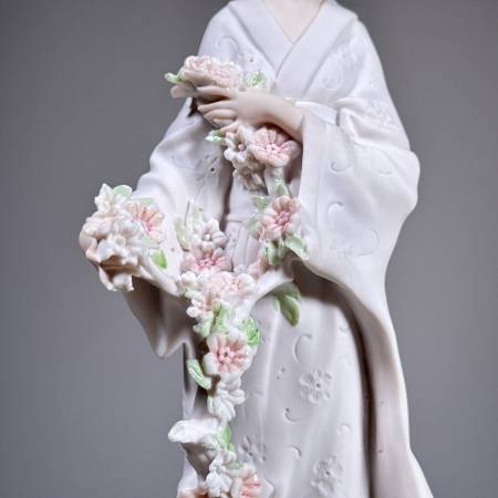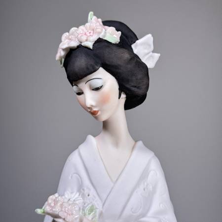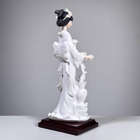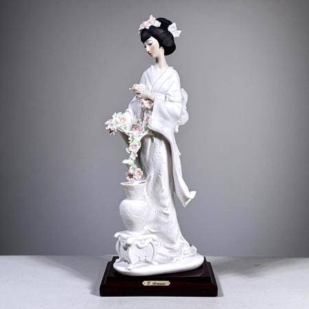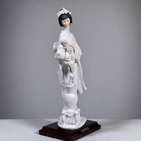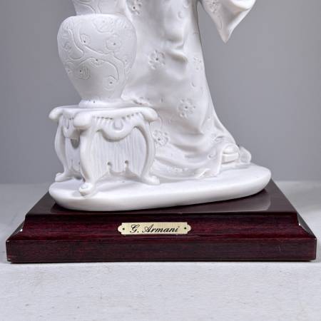 "Oriental Lady" produced by Italian sculptor Giuseppe Armani. Mounted on polished wood base with nameplate reading, "G. Armani." Numbered "#403S" on base. - h. 13 x w. 5.5 x d. 4 in