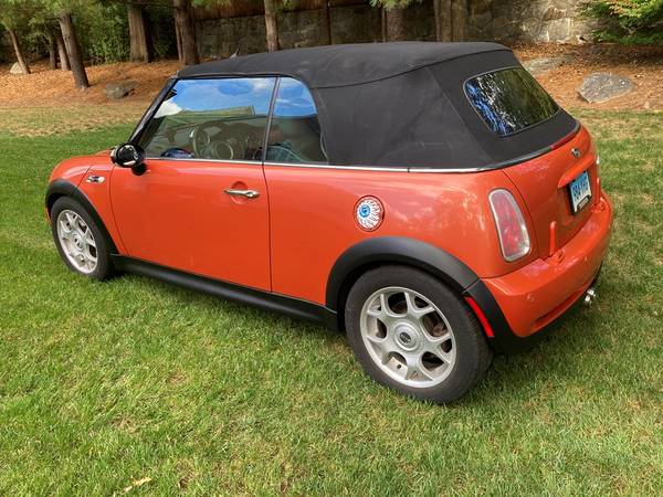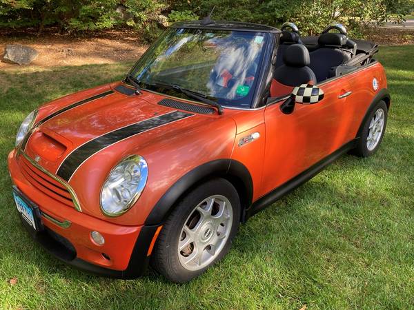 This is the one! Low-mileage, well-equipped 2005 Mini Cooper S convertible in the highly desirable Hot Orange with the 1.6 liter supercharged engine and 6 speed manual transmission. Interior in Hot Orange featuring blue leather seats with orange inserts. R52 minis are well known for their sporty performance and handling. Take a look at the auction results on this popular collector and enthusiast site: