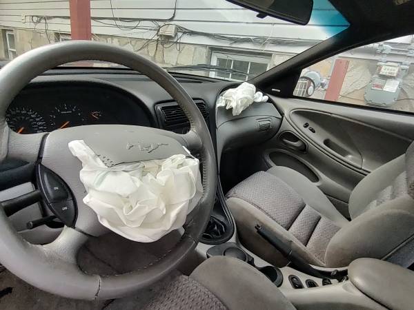 Selling as a parts car 1998 Ford Mustang GT 4.6 SOHC with only 65,352 original miles 5-speed manual transmission got into an accident airbags deployed #1 reason selling as a parts car. $4,500 O.B.O well over $3K in parts....A new/remanufactured engine anywhere from $3,500 to $4,000, a new/remanufactured manual transmission $2,200, rear differential assembly anywhere from $1,400 to $1,700 new. Seats are in good condition, door switches/locks//power windows in working order all reusable parts. Interior carpeting reusable, hood/fender reusable, tires are in good condition, OEM mustang GT wheels. Back and front bumper, trunk lid with spoiler good condition/reusable. $4,500 O.B.O. Any questions text me-----STRICTLY A PARTS CAR--Sam