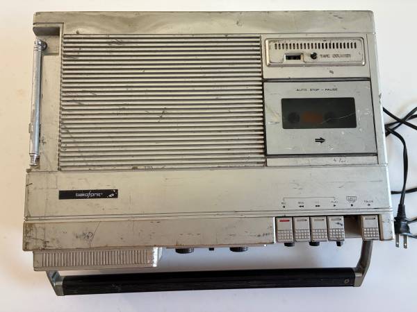 Used portable Bakosonic TV-Radio-Cassette Recorder model CRP810 with 6” TV screen, attenna and power cord.