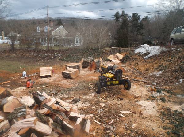 Log splitting with hydraulic machine, chain saw work (New Canaan)