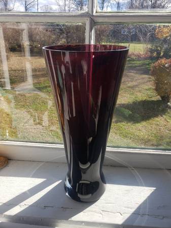 Beautiful Magenta Glass Tapered Vase Limited Edition - 14 of 1000 Made in Poland (Krosno?) 12" H x 5-3/8"W (Top Opening) x 4" L (Base)