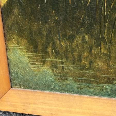 The frame itself, has some scuffs and chips in the wood along with some scratches