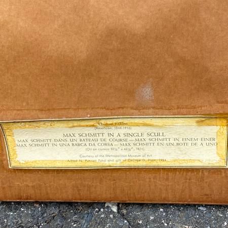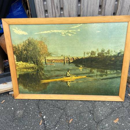 Beautiful oil-on-canvas reproduction of “Max Schmitt in a Single Scull” by Thomas Eakins (American, 1844–1916).