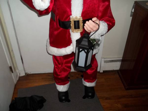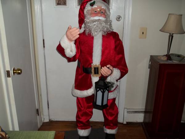 SANTA SAYS: I AM BRAND NEW UNUSED IN THE ORIGINAL BOX AND I SEND MERRY CHRISTMAS GREETINGS FROM THE NORTH POLE.. I SING, TELL STORIES, AND HAVE A LIGHTED LANTERN AND I AM LIFESIZE....BEFORE YOU KNOW IT, IT WILL BE CHRISTMAS TIME AGAIN..AND...WHAT'S A CHRISTMAS PARTY WITHOUT SANTA .... I COME WITH ORIGINAL BOX AND INSTRUCTIONS VERY SIMPLE ASSEMBLY UPPER AND LOWER UNIT LOCK TOGETHER AND CONNECT MODULE AND YOUR DONE.. ASSEMBLED ONCE FOR PICTURE ....SANTA COMES FULLY DRESSED.. ON /OFF 3 THREE POSITION SETTING IN UPPER BACK SO YOU CAN DECIDE ON SINGING (STORY TELLING THE NIGHT BEFORE CHRISTMAS) OR THE LIGHTED LANTERN ALL AT THE SAME TIME OF SEPERATELY...LANTERN HAS SEPERATE ON / OFF SWITCH.. SPAMMERS DO NOT WASTE YOUR TIME..NO TEXTS, NO CHECKS, NO MONEY ORDERS, NO CREDIT CARDS ACCEPTED..... $$$$$$$$$$$CASH ONLY$$$$$$$$$AT PICK UP..CALL show contact info