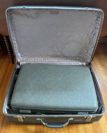 American Tourister suitcase set of 3 suitcases with keys. Includes one large, one small, and one accessory case.