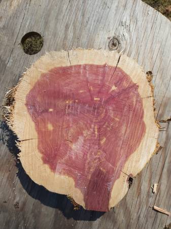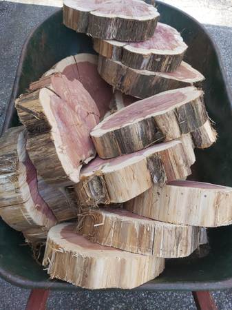 Live Edge Round Eastern Red Cedar Slab Slice Cedar rounds and slices. Different sizes from 2" - 12" diam. vary in thickness from 1 -3.5". $25 each for the larger ones which are about 12 in x 2 to 3 in and $15 for the smaller ones which are are six to eight inches by one to two inches