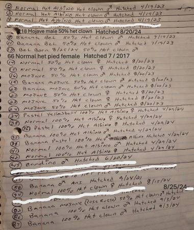 Ball Pythons, there is a re-homing fee. Send me the number of the snake you like more information on and i will send you a picture of it and answer any question.