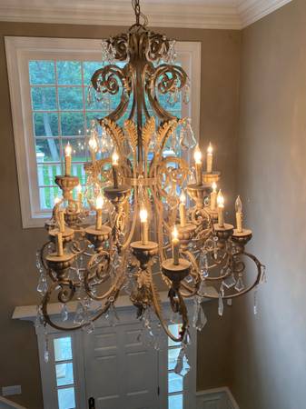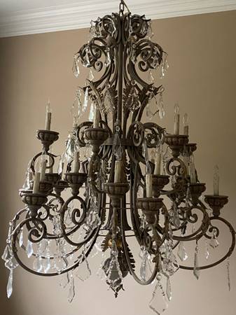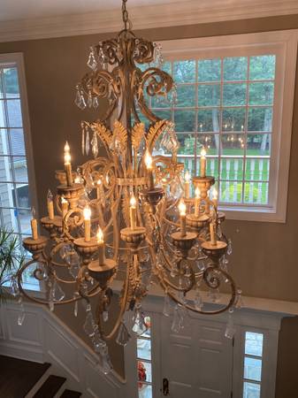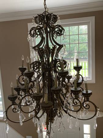 I am selling a unique center hall Signature Chandelier by, Metropolitan Lighting. With 24 candelabra bulbs in a Windsor rust and bronze finish. It has 50 hanging Crystals in excellent condition. Size is about 3.5 ft wide and 4 ft high. This chandelier adds elegance to any entrance way. You have to see to appreciate. Asking $3,950. 00, if interested please call show contact info