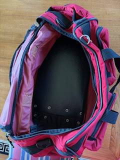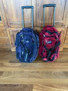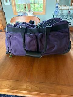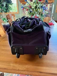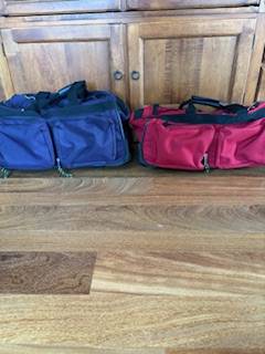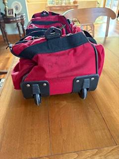 Extremely durable, heavy duty Olympia Rolling duffels. Large U shape main compartments with additional 7 top and side compartments. All zippers are heady duty as well. In line skate wheels with retractable internal handle. Durable, strong carry straps. Measures 22” length, 12” width and 11” height. Well-constructed; able to withstand the challenges of travel. Priced at $85 for both or $50 each if sold separately.