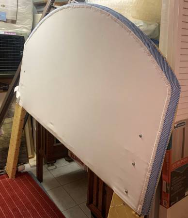 Calico Home Photo looks wash out. Sorry. Custom-made Could be reupholstered Headboard width 62" Headboard height at center 57" Welting in contrasting fabric Concealed legs Bolts included Original...