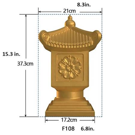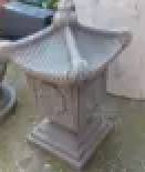 15 inch tall Wildflower Pagoda.30lbs. Decorative. Low cost compare anywhere.15” H. with base 7"x 7". upper 9" x 9 . Decorative Pinnacle treasure for your Garden, Home entrances, walls and pillars. Real Chinese designed Architectural Ornaments that can also be used to beautify your garden or entrance. Use in flowerbeds, landscape and entrances. Often used as finials along walls, entrance's and atop stone pillars, or patio. Unpainted, solid, high strength 4000psi cement. Symbolic and decorative. I recommend Sealing with a cement sealer or stain to prevent water absorption, winter freeze or salt/pollution damage. Can be sealed or painted various ways and color themes. seal or stain, concrete paint etc. New. Used architecturally to beautify your landscape.. Have several $30 each. unpainted only. dark images here are wet. they are lighter colored when dry.