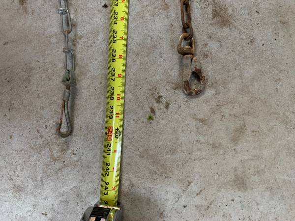 Dog tie out chains 20', go for $20'00 plus new, Must be picked up, leave your # and I'll call you!!!! REPLIES WITH OUT PHONE #'S WILL BE REPORTED AS SPAM, BLOCKED, AND DELETED!!!!