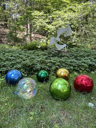 Classy Garden Balls ~ Vintage Mercury Glass $20 each Special way to make your garden even more special! Each has 10" diameter, very good pre-owned condition Can be displayed just on the ground or...
