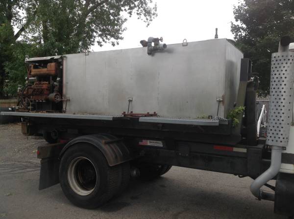 This is a Stainless Steel Spray Rig mounted for 20000 lb's Hook lift Truck. The pump is 50 GPM BEAN with variable pressure (0-800 psi).The Engine is a Wisconsin VG4D, 4 cylinder air cooled, 37 HP, gasoline.