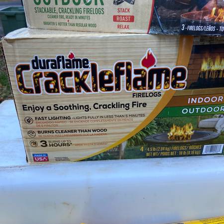 • 1 box Duraflame Crackleflame (4 logs, 4.5 lb each – indoor/outdoor, burns up to 3 hours)