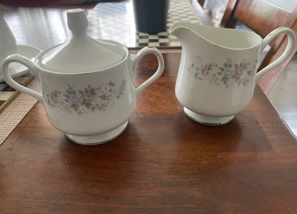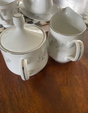 VINTAGE Carlton Dinnerware CORSAGE Pink Blue White Flowers 25-Piece Set JAPAN not used. Includes 10 teacups and saucers, 2 large dinner plates, 1 small plate, gravy boat and dish, milk cup and sugar bowl with top. Message me with any questions about the item. Smoke and pet free home.