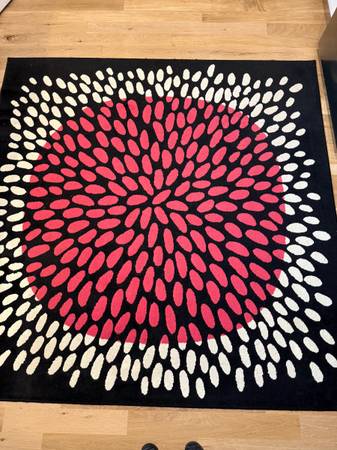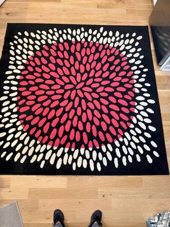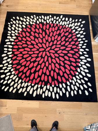 A square rug with design color using black, pink and white 6'7"x 6'7" $10 cash with pick up in Fairfield Ct