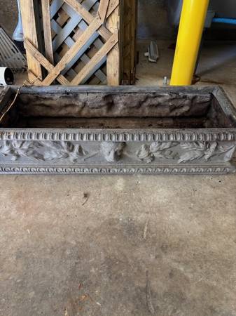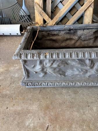 Large rectangular resin/composite planter/flower pot. Measures 38 inches long X 14 inches wide X 9.5 inches deep. Located in backcountry Greenwich off of Round Hill Road.